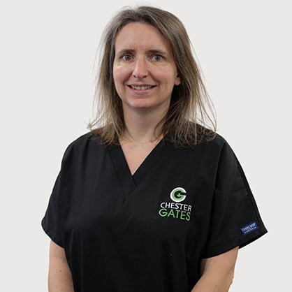 After passing her board certifying exam in 2018, she joined the University of Liverpool Small Animal Teaching Hospital as a Senior Lecturer. She joined Chestergates Veterinary Specialists in January 2026. Her special interests include new diagnostic methods and cutaneous infectious diseases.